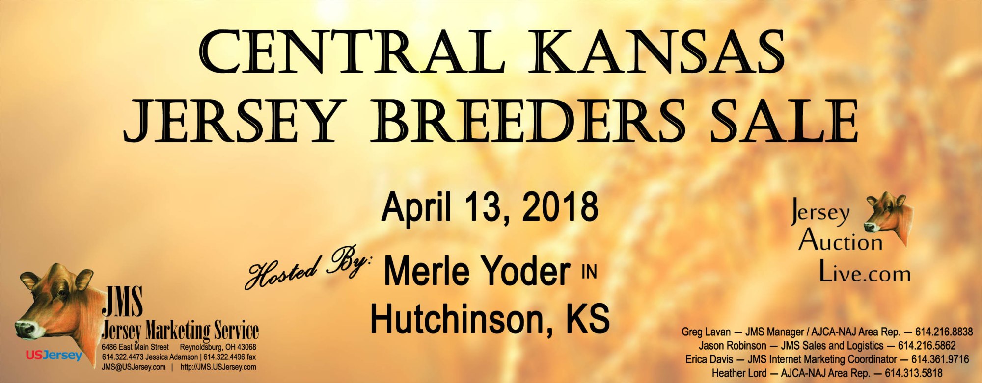 The Merle Yoder family in Hutchinson, Ks., will be hosting the Central Kansas Jersey Breeders Sale on FRIDAY, APRIL 13, 2018. The sale will begin at 11:00 a.m. (CDT) and will also be broadcast on JerseyAuctionLive.com.