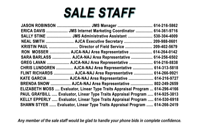 For more information about any of the online services from JMS, contact Erica Davis, JMS Internet Marketing Coordinator (614-361-9716). To consign to or buy from a JMS Sale, to inquire about JMS managing your sale, or for more information about how JMS can help you market your Jersey genetics, contact a member of the JMS Staff…